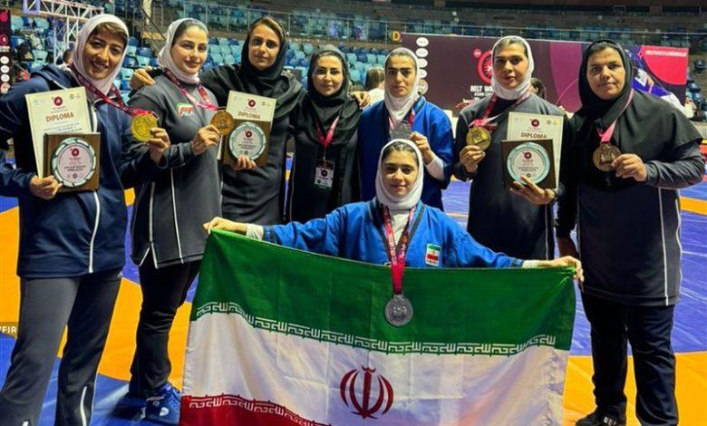 برای تیم ایران رقیه محمودآبادی در وزن 65 کیلوگرم، مبینا میرزاپور در وزن 70 کیلوگرم و سحر غنی‌زاده در وزن 75 کیلوگرم به مدال طلا، مرضیه خندان در وزن 55 کیلوگرم و فاطمه فتاحی در وزن 60 کیلوگرم به مدال نقره و عزت قربانی ثانی در وزن 75+ کیلوگرم به مدال برنز دست یافتند.